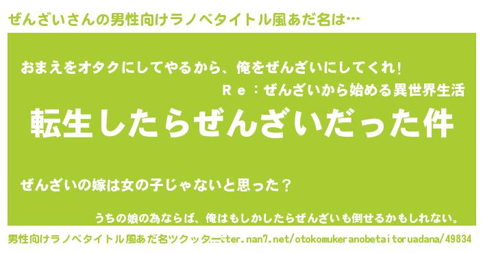 | 女子向けラノベタイトル風あだ名 | 『婚約破棄系悪役ぜんざいに転生したので、保身に走りました。』 |