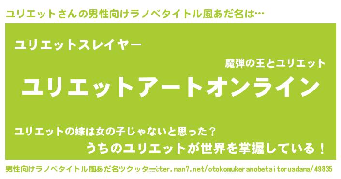 | 胡散臭い通販商品みたいなあだ名 | 『億万長者になれる水晶球…その名も「ユリエット」』 |