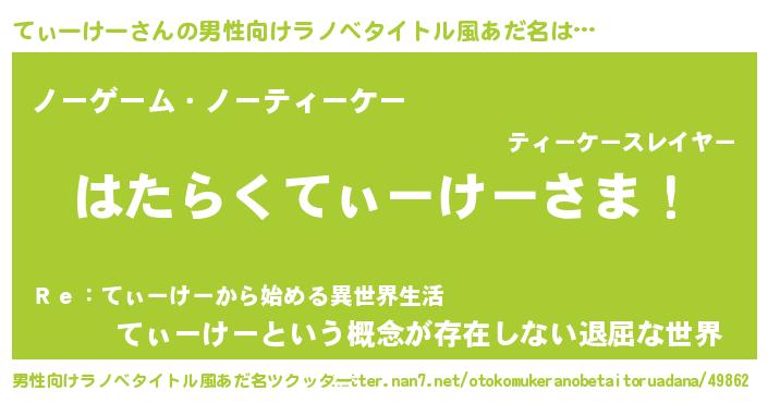 | 肩書あだ名 | 『てぃーけーマネージャー』 |