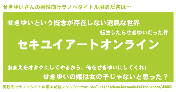 | 女子向けラノベタイトル風あだ名 | 『誰かこのせきゆいを説明してください! ~契約から始まるウェディング~』 |