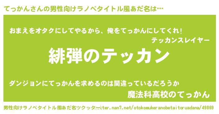 | ヒーロー風カッコイイあだ名 | 『正義の使者てっかん』『炎刃騎士テッ』 |