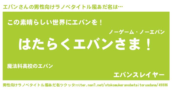 | 意味不明あだ名 | 『住所不定無職エバン(7歳)』『自称エバン』 |