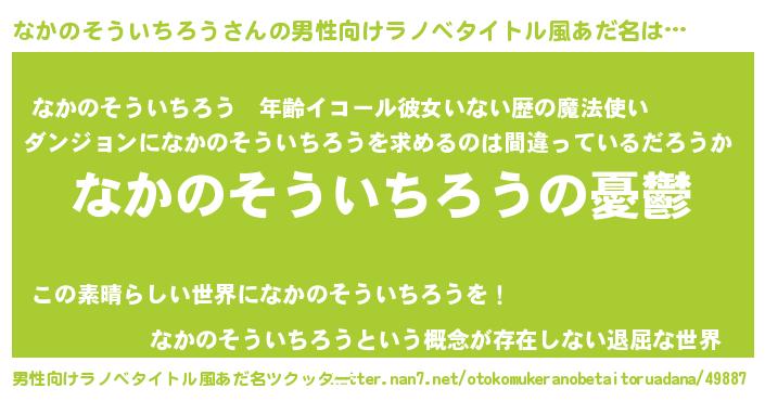 | 女子向けラノベタイトル風あだ名 | 『なかのそういちろう姫と円卓の騎士』 |