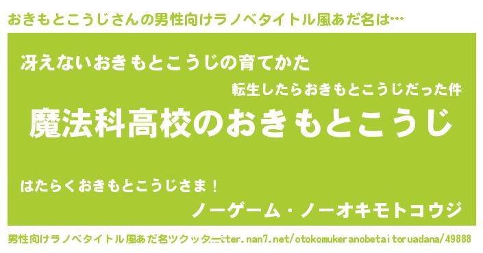| 肩書あだ名 | 『おきもとこうじ閣下』 |