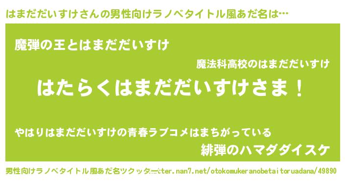 | ヒーロー風カッコイイあだ名 | 『仮面ハマダー』『ネオハマダダイスケ』 |