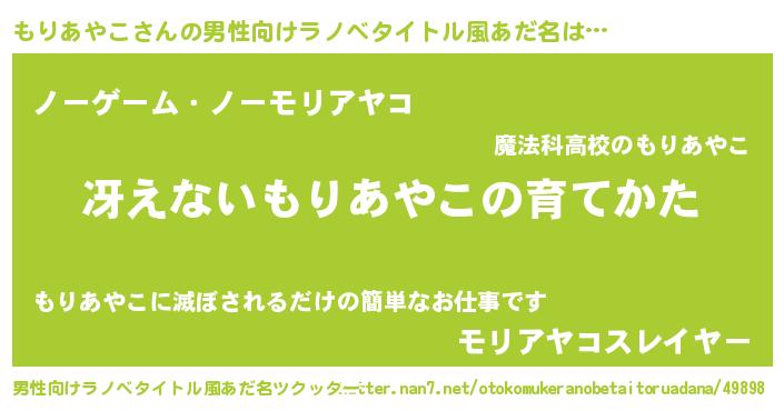 | 女子向けラノベタイトル風あだ名 | 『シンデレラもりあやこ家の靴箱館』 |