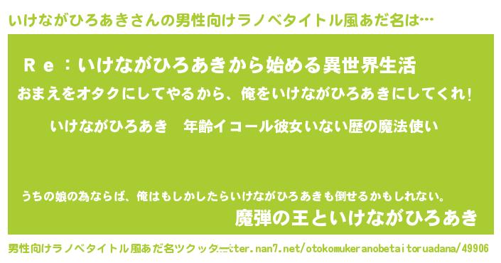 | 胡散臭い通販商品みたいなあだ名 | 『芸能人もオススメするアガリクス…その名も「いけながひろあき」』 |