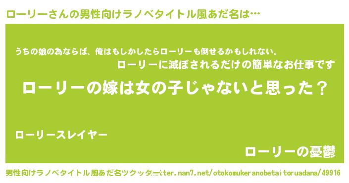 | 女子向けラノベタイトル風あだ名 | 『ローリー様がみてる』 |