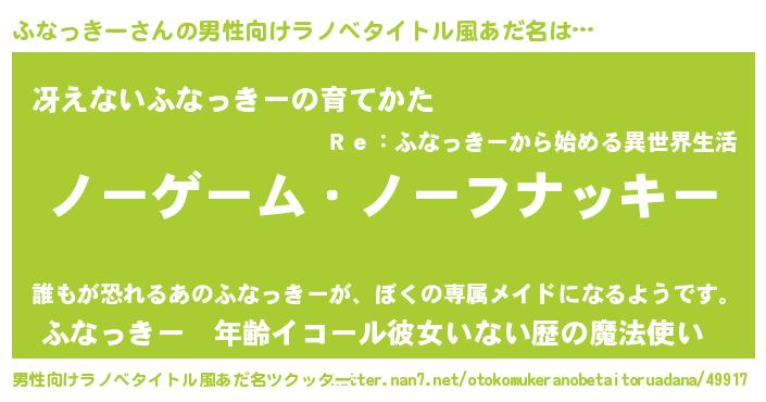 | ヒーロー風カッコイイあだ名 | 『慈愛の使者ふなっきー』『幻影騎士フナ』 |