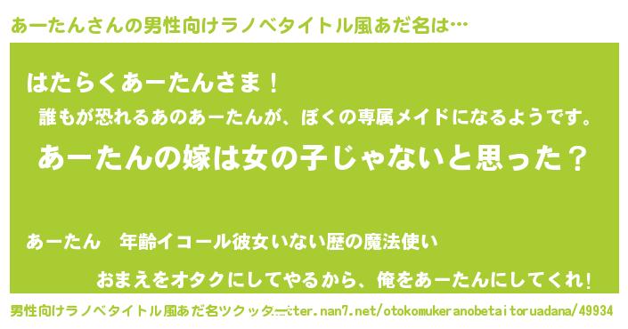 | 女子向けラノベタイトル風あだ名 | 『あーたん様がみてる』 |