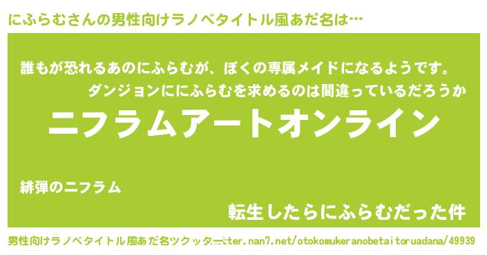 | 胡散臭い通販商品みたいなあだ名 | 『モテモテ間違いなしブレスレット…その名も「にふらむ」』 |