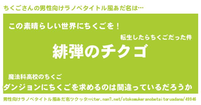 | 意味不明あだ名 | 『住所不定無職ちくご(43歳)』『自称ちくご』 |