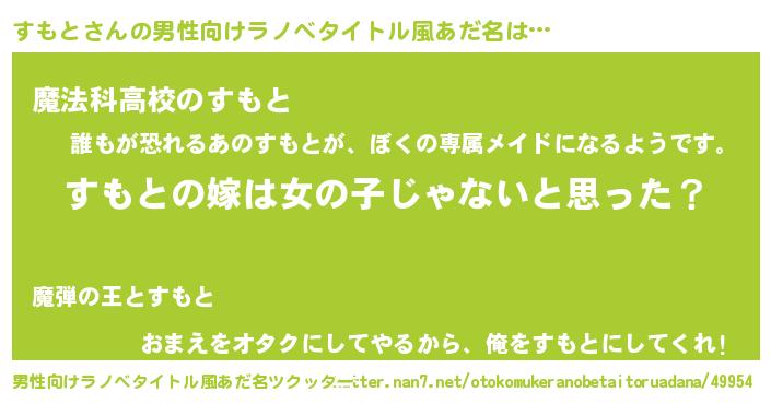 | ヘコむあだ名 | 『すもを』『すもと(震え声)』『豆乳』 |