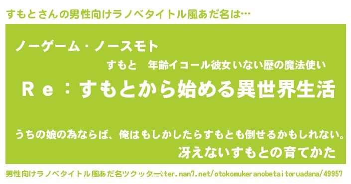 | 女子向けラノベタイトル風あだ名 | 『闇のすもと』『死神すもとの再婚』 |