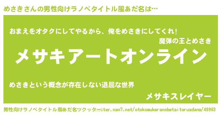 | ヘコむあだ名 | 『めさにゅー』『めさき(小並感)』 |