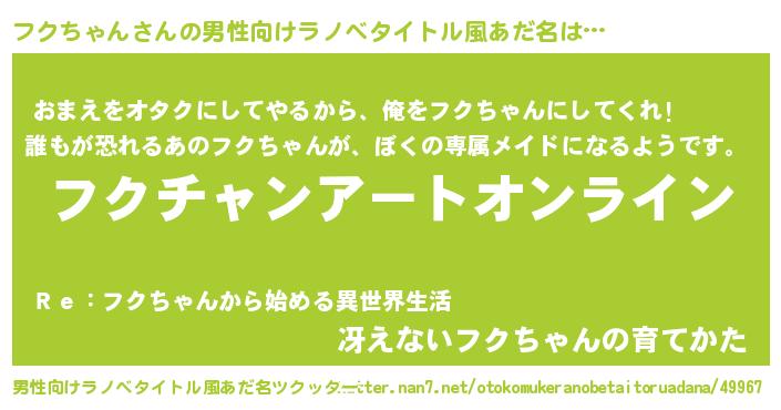 | 胡散臭い通販商品みたいなあだ名 | 『モテモテ間違いなし水晶球…その名も「フクちゃん」』 |