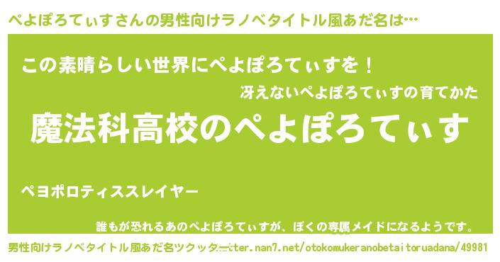 | 女子向けラノベタイトル風あだ名 | 『ぺよぽろてぃすなんてお断りですっ。』 |