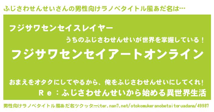| 女子向けラノベタイトル風あだ名 | 『誰かこのふじさわせんせいを説明してください! ~契約から始まるウェディング~』 |