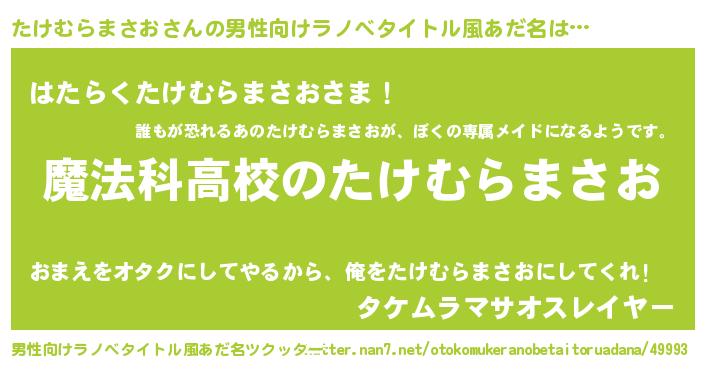 | 意味不明あだ名 | 『自称たけむらまさお』 |