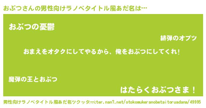 | 女子向けラノベタイトル風あだ名 | 『おぶつ夫妻のなれそめ』 |