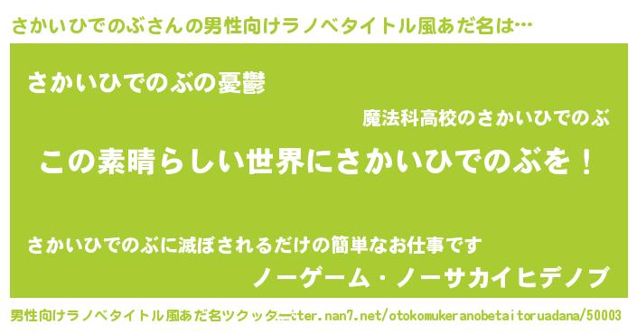 | 女子向けラノベタイトル風あだ名 | 『乙女ゲームの破滅フラグしかない悪役さかいひでのぶに転生してしまった…』 |