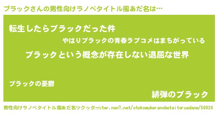 | 女子向けラノベタイトル風あだ名 | 『異世界で失敗しない100のブラック』 |