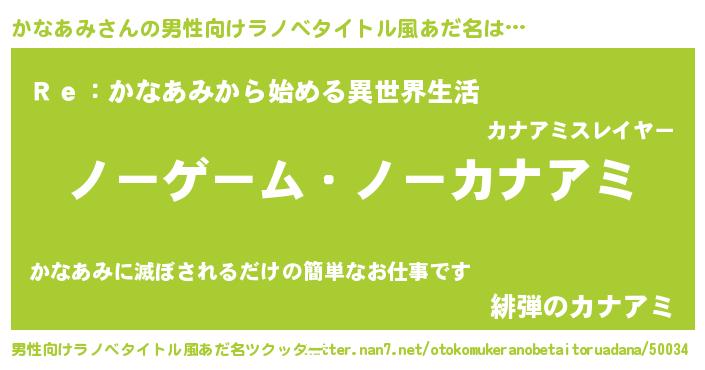 | 女子向けラノベタイトル風あだ名 | 『かなあみ恋絵巻』 |