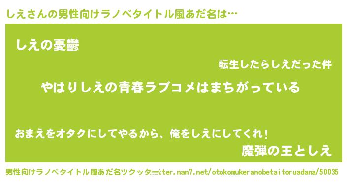 | 女子向けラノベタイトル風あだ名 | 『しえの雑貨屋さん』 |