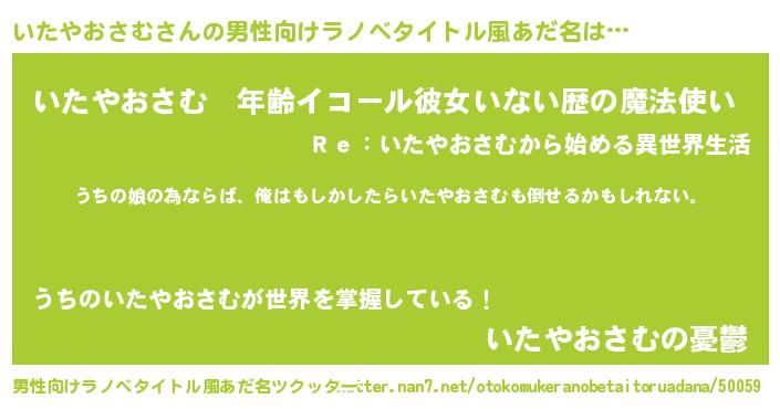| 女子向けラノベタイトル風あだ名 | 『いたやおさむ伯爵の花嫁』 |