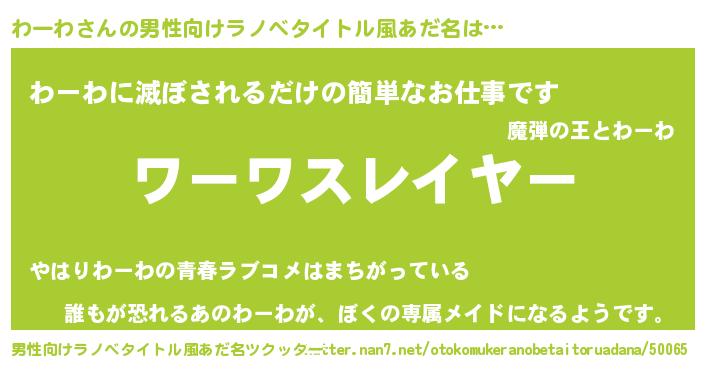 | 胡散臭い通販商品みたいなあだ名 | 『絶対に幸福をもたらす健康食品…その名も「わーわ」』 |