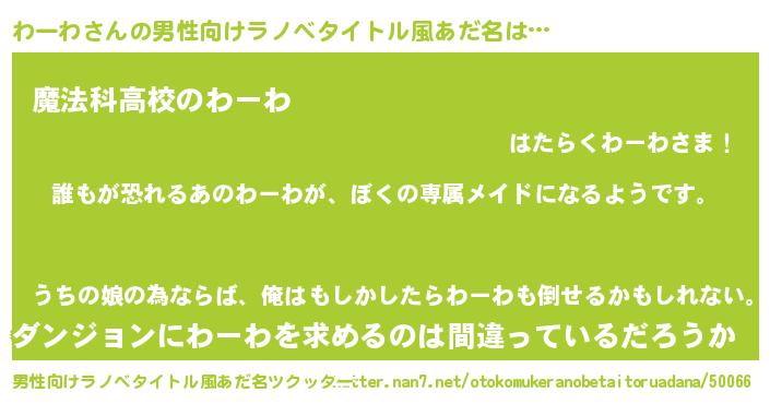 | 胡散臭い通販商品みたいなあだ名 | 『来世でも幸せになれる健康食品…その名も「わーわ」』 |