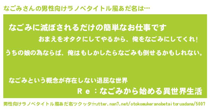 | ファンタジー風あだ名 | 『エターナルナゴミー』『ゼナゴトゥ』 |