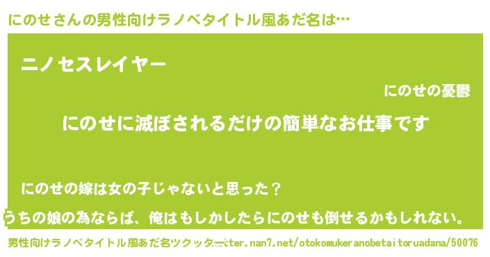 | 胡散臭い通販商品みたいなあだ名 | 『運命の人と巡り会える高級そうな壺…その名も「にのせ」』 |