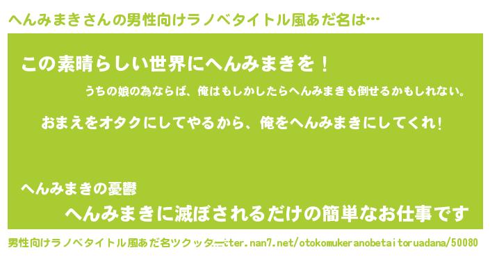 | 胡散臭い通販商品みたいなあだ名 | 『100人中100人が認めたマグネット磁石…その名も「へんみまき」』 |