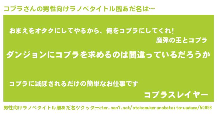| 女子向けラノベタイトル風あだ名 | 『コブラは平凡を望む』 |