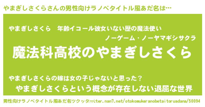 やまぎしさくらさんの男性向けラノベタイトル風あだ名をツクッター!