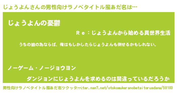 | 意味不明あだ名 | 『じょうよんフォーエバー』 |