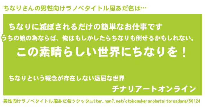 | 意味不明あだ名 | 『住所不定無職ちなり(50歳)』『自称ちなり』 |