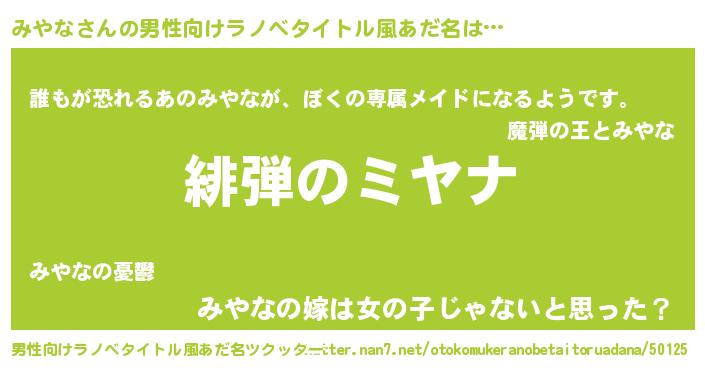 | 胡散臭い通販商品みたいなあだ名 | 『絶対に幸福をもたらす健康食品…その名も「みやな」』 |