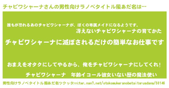 | ヘコむあだ名 | 『チャピワシャーナ(爆)』『チャぷりん』 |