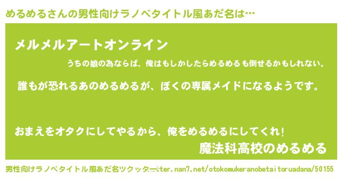 | ヘコむあだ名 | 『めるめる(震え声)』『めるにゅー』 |