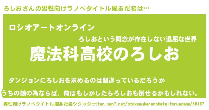| 意味不明あだ名 | 『自称ろしお』『ペロリンろしお』 |