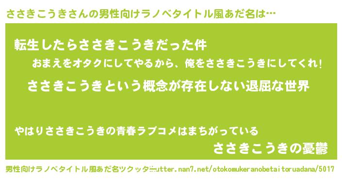 | ヘコむあだ名 | 『ささきこうき(遠い目)』『ささにー』 |