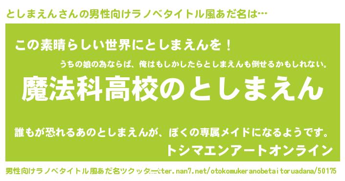 | 女子向けラノベタイトル風あだ名 | 『としまえんなんてお断りですっ。』 |