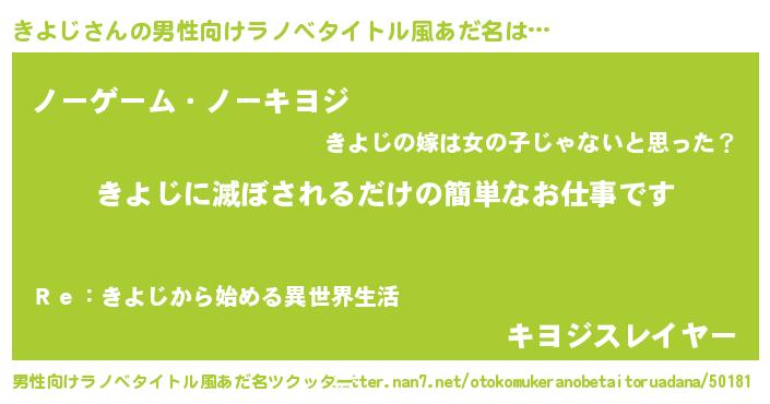 | ヒーロー風カッコイイあだ名 | 『天空の使者きよじ』『黄金騎士キヨ』 |