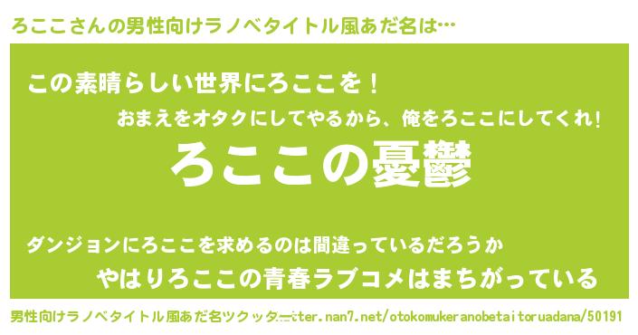 | 女子向けラノベタイトル風あだ名 | 『ろここ姫と円卓の騎士』 |