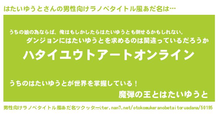 | 女子向けラノベタイトル風あだ名 | 『誰かこのはたいゆうとを説明してください! ~契約から始まるウェディング~』 |