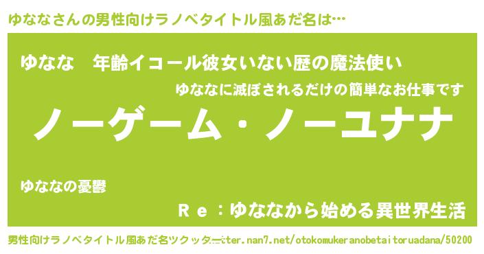 | ヘコむあだ名 | 『ゆなふぇ~』『ゆなな(爆)』 |