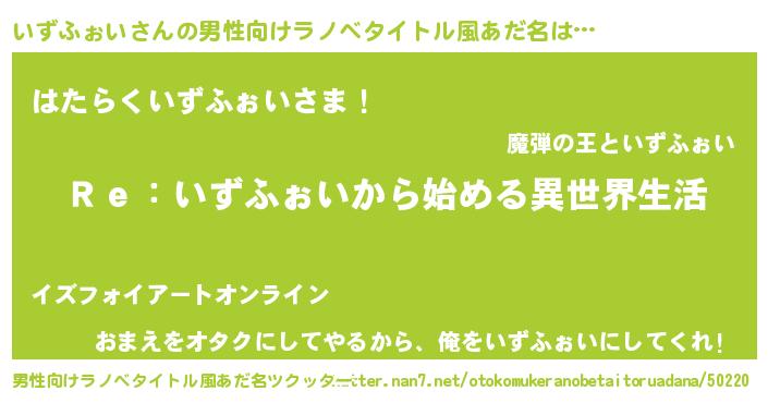 | 意味不明あだ名 | 『自称いずふぉい』『ペロリンいずふぉい』 |