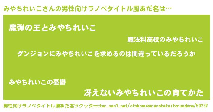 | 女子向けラノベタイトル風あだ名 | 『みやちれいこは平凡を望む』 |